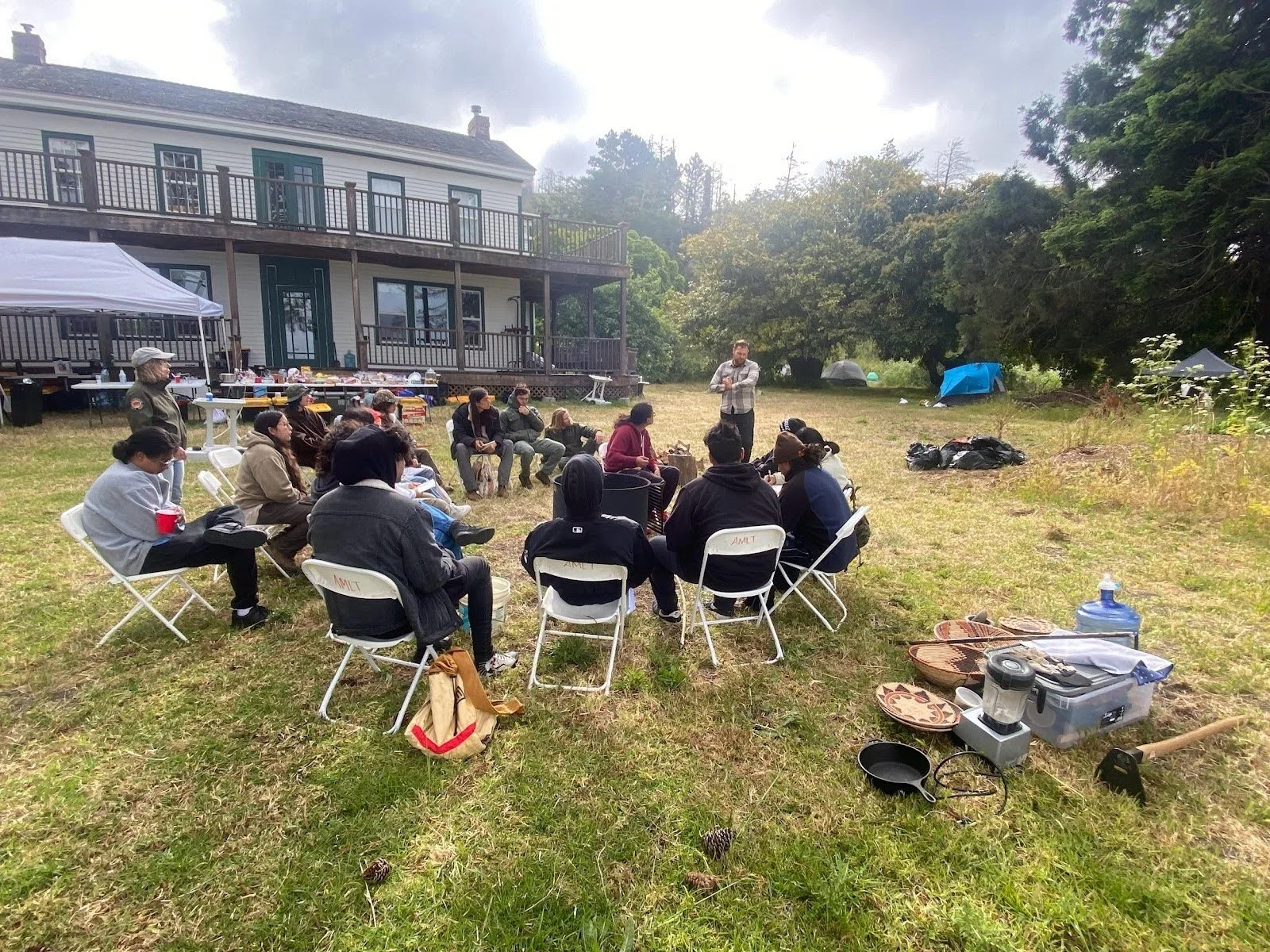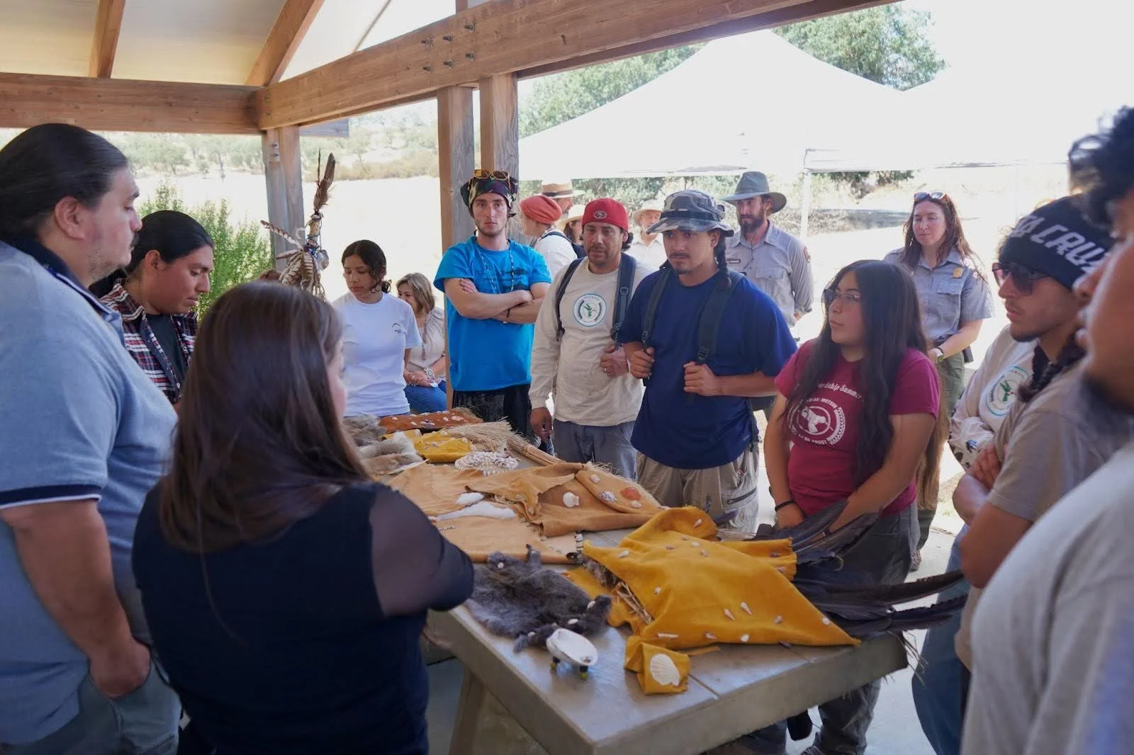 On the final Friday of the internship, as everyone packed up their campsites, students and interns said goodbye to one another as each prepared to depart from Hollister Hills. Interns then drove to Soledad, CA and arrived on the western side of Pinnacles National Park. There they met up at the visitors center with a delegation from the Chalon tribe who invited them to attend a planned gifting of traditional regalia to the park service.