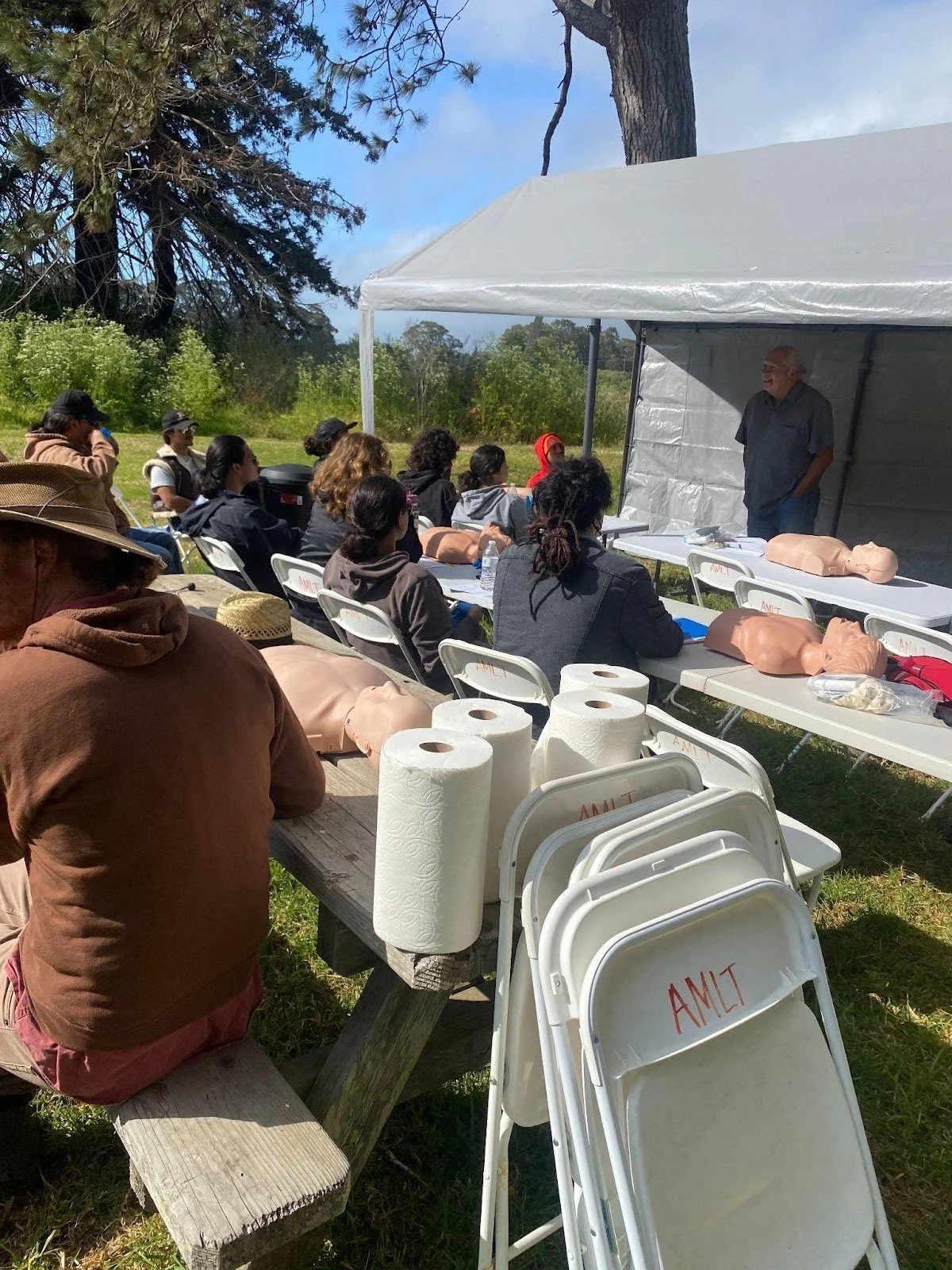 On Monday, interns were led by Noah Orth, Program Manager of the Native Stewardship Corps, on how to perform cardiopulmonary resuscitation (CPR), with certifications being acquired at the end of the workshop. Additionally, participants were trained on using automated external defibrillators (AEDs), epinephrine pens, and administering first aid. Later that day, interns toured row crop fields and a greenhouse at Cascade with Native Plant Propagation Program Manager, Aylara Odekova. The group learned about the Native Plant Propagation Program and its efforts to produce seeds for future habitat restoration. That evening, interns were led in discussion by Chairman Valentin Lopez on navigating being a Native in two worlds.
